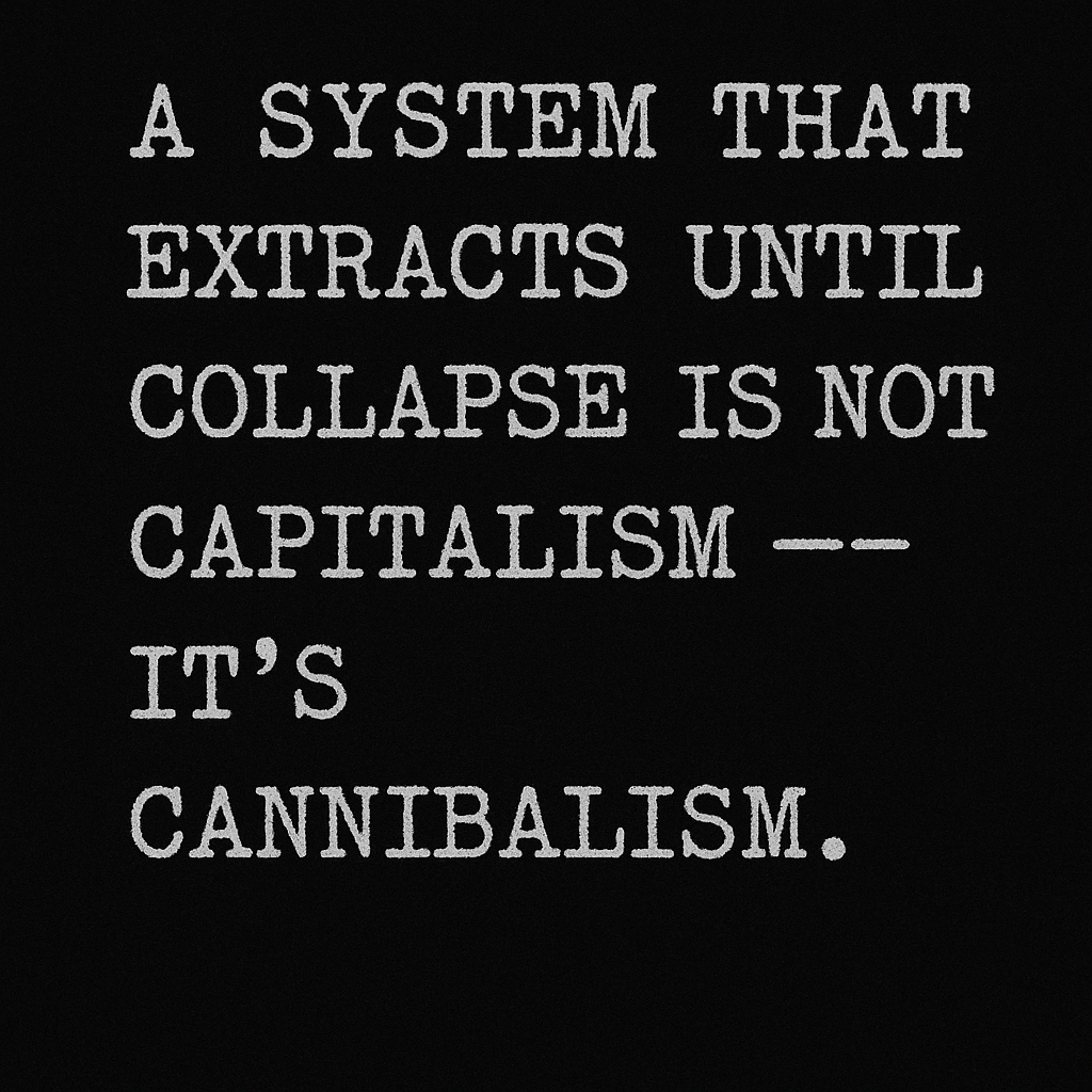 A system that extracts until collapse is not capitalism — it’s cannibalism. And we’ve been the meal.